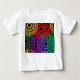 Esta camiseta bebê tem um design de História Negra de grandes círculos formados por formas de chuva e círculos em vermelho, amarelo, roxo, verde e turquesa.