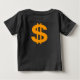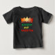Baby T-shirt que apresenta o texto "Conhece a minha riqueza" em cores africanas com uma coroa ouro no topo. A parte de trás apresenta um sinal dourado.