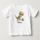 Esta camiseta personalizada para bebês irresistivelmente fofa apresenta um Tiranossauro caprichoso e engraçado chutando uma bola. Perfeita para o pequeno fã de futebol na sua vida! Personalize com o nome do seu bebê para um presente verdadeiramente único e personalizado.