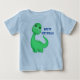 Uma camiseta de bebê com texto e uma imagem fofa de dinossauro de bebê.