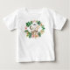 Adorável "Selgle Safari Animal Friends" design Personalizou Camiseta Bebê. Adicione seu nome ou textos (ou seja, pequeno príncipe) | pequena princesa) para tornar esta princesa adicional especial. Presente perfeito para um novo bebê nascer, chá de fraldas, aniversário e conjunto de Natal junto com a bicicleta correspondente, roupa de corpo e cobertor. Este produto apresenta lindas flores tropicais aquáticas com folhas verdes e amigos amigáveis de safari da selva com confete dourado à sua volta. Projetado para coordenar com nosso Chá de fraldas | Coleção De Amigos Safari Mascarados E Mascarados.