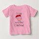 Um garoto com boné vermelho e texto no estilo de criança que diz "É meu primeiro Natal!" nas primeiras camisetas de Natal do bebê, sacos de tote e outros equipamentos de Natal!