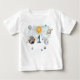 Celebre o marco especial do seu filho com esta camiseta mágica de aniversário com tema de espaço sideral para bebês. Apresenta planetas imaginários, lua e estrelas em tons de azul-marinho e dourado. Estas camisetas de bebês com tema de espaço sideral, galáxia, sol, lua, estrelas e planetas são perfeitas para uma festa de aniversário simples. O design moderno e caprichoso apresenta um fundo azul-marinho em aquarela adornado com um sol amarelo vibrante, uma lua cinza sorridente, planetas em cores pastéis e estrelas douradas espalhadas.