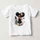 Uma menina fada doce, preta e fofa com cabelo preto encaracolado preso em rabos de cavalo, vestida com um vestido preto elegante e um par de asas macias de cor creme claro. Este lindo desenho tem uma coroa floral .