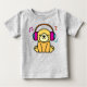 Camiseta Para Bebê Feliz filhote sorridente com fones de ouvido.