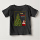 Famoso Natal Árvore Natal Papai Noel Personalizar Camiseta Bebê tem Papais noeis bonitinhos Cachorro desejando Felizes Feriados e uma Árvore de Natal decorada no chão Negro. Personalize-o com o seu nome.