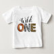Camiseta de festa de 1 ano com a frase "selvagem" em diferentes estampas de animais. Você pode personalizar essa camiseta adicionando o nome da criança abaixo!