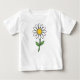 Ilustração caprichosa de margarida com linhas ousadas e cores amarelo brilhante, verde e branco. Perfeita para camisetas de jersey finas para bebês, este vetor floral divertido traz alegria e charme para os pequenos.