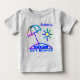 Uma camiseta colorida e divertida para a sua mais bonita. Em um estilo de tinta arrojado, um guarda-chuva de praia é colocado sob um sol brilhante. A BUM da PRAIA está na areia e a praia do Golfo está abaixo do trabalho de arte lúdico. Há uma modelo para o nome do seu filho sobre o sol. As cores maravilhosas são azul-real, aqua, fúcsia, amarelo-girassol, verde limão e laranja.