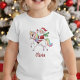This personalized, cute and kawaii t-shirt features a jolly, waving Santa Claus riding a sparkly white unicorn with a magnificent rainbow mane and tail.