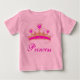Este lindo body de bebê com tutu rosa é um ótimo presente para um chá de bebê. Ele tem uma coroa de tiara de princesa com a palavra "Princesa" em letra cursiva. A parte inferior do body tem um tutu.