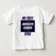 Crie uma manutenção única para a sua geração mais nova com esta camisa de criança "Minha Primeira Reunião Familiar" com cores azul e preto de marinho marmoreado. O abstrato preto azul e preto marmoreado adiciona um pano de fundo colorido para o nome e o ano da sua família. Personalize rápida e facilmente para criar uma lembrança gentil para o próximo grande encontro ou férias da sua família.