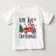 Meu Primeiro Natal Trator do Papai Noel Fofo Fazenda Camisetas para Bebês Meninas e Bebês Meninos apresenta o texto "Meu 1º Natal" em tipografia moderna com o Papai Noel dirigindo um trator. Presente de Natal perfeito para uma bebê menina ou um bebê menino. Criado por Evco Studio www.zazzle.com/store/evcostudio