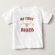Esta é uma camiseta de bebê de aniversário de 1 ano temática Meu Primeiro Rodeio vermelha.