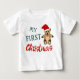 Minha camiseta do Bebê do Meu 1º Natal Urso de Natal com Chapéu de Papai Noel. Tipografia verde e vermelha. Desenho fofo de um ursinho com um chapéu vermelho de Papai Noel.