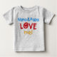 Nana e a papá amam-me t-shirt, chapéus, camisolas, rompers, bodysuits, vestidos sem mangas, camisas ruffled e vestidos, camisetas longas da luva, t-shirt do raglan, e muito mais com um design colorido e do divertimento azul, vermelho, e do ouro do texto e do coração.