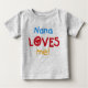 Nana ama-me T-shirts, fatos-macaco, vestidos sem dormir, camisas de ralé, vestidos de ralé, chapéus, fatos orgânicos, fatos de futebol, fatos-macaco, T-shirts raglan, T-shirts escuras, camisas de camisola, capuzes de pulôver e mais para bebês, crianças e bebês com texto e design cardíaca de vermelho, azul e azul, O ouro que lê Nana me ama!