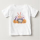 Pequeno Boo! Celebrar o tema do chá de fraldas de Halloween com este bonitinho Bebê de Halloween é Camiseta de Bebê Chá. este design inclui abóbora laranja, coelhinho fofo no caldeirão de Halloween, aranha, teia de aranha, aquarela do crânio
