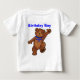 Uma festa de aniversário para crianças e ursos de pelúcia. Ursos bonitos e castanhos com arcos azuis dançando através dessa camisa divertida de festa de primeiro aniversario para o garoto de 1 ano. Personalize todo o texto usando os modelos fornecidos. Design original do Anura Design Studio.