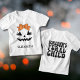 Vista sua pequena com um estilo assustador com nossa camiseta de Halloween personalizada engraçada e fofa para bebês meninas! Com um rosto de abóbora adorável e texto personalizado com o nome da sua filha na frente, essa camisa adiciona um toque divertido a qualquer fantasia de Halloween. A parte de trás diz “Filho Feral de Alguém” para uma dose extra de humor. Perfeita para doces ou travessuras, festas de Halloween ou fotos de família de outono, essa camiseta personalizada é uma maneira divertida e festiva de celebrar a temporada! Isso é projetado para crianças e bebês!