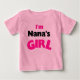 Eu sou a Nana's Girl T-shirts, fatos-chave, camisas de velinha, capuzes, vestidos sem dormir, chapéus, camisas e vestidos de rochedo, T-shirts escuras, rompers e outros roupas para crianças, bebês, e bebês com texto rosa e preto brilhante que diz que eu sou a Nana's Girl!