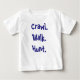 Cortador branco e azul de criança com tipografia "Crawl Walk Hunt" para o seu adorável.