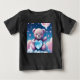 Uma camiseta infantil com uma adorável impressão de um ursinho peludo fofo sentado numa nuvem macia e pastel. O urso tem um coração azul brilhante que se parece com cristal. O fundo mostra um sonho de céu noturno adornado com estrelas rosa, azuis e ouros. Acima do urso boia uma grande lua rosa parecida com um balão, com pequenos corações balançando dele. O design inteiro é colocado em tons suaves e pastéis, criando uma atmosfera mágica e de cama. Esta camiseta é perfeita para pequenos sonhadores — macios, confortáveis e cheios de charme, ideais para o visto cotidiano e sonhos doces. 🌙 ✨ 🐻 💙
