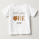 Uma t-shirt para o primeiro aniversário do teu bebê. O esquema de cores da camisa de bebê é branco e castanho com a palavra "um" em letras grandes, com uma ilustração do rosto de urso como primeira letra da palavra. Simplesmente, personalize esta camisa, adicione-a ao seu carrinho, e feliz aniversário ao seu bebê maravilhoso! Urso Cócio Um Nome Primeiro Aniversário Bebê T-Shirt Feriado Design | ©Melissa Patton — Artista/Ilustrator