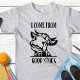 Com um design gráfico de uma vaca de desenho animado com o texto "Eu Venho de Boa Família" em letras negrito, esta camiseta certamente trará um sorriso para o rosto de todos.
