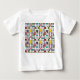 Esta camiseta bebê tem uma design moderna do século médio de uma grade de linhas pretas com quadrados e retângulos em cores retrorativas em um campo de branco.