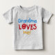 Avó me ama T-shirts, camisetas de manga comprida, T-shirts de raglan, fatos de esporte, fatos de futebol, fatos de tutu, fatos orgânicos, vestidos sem dormir, vestidos de ralé, camisas de ralé, chapéus, T-shirts escuras, camisas de futebol, casacos de pulôver, romances e mais para bebês, crianças e bebês com azul Vermelho e dourado e design cardíaca que lê vovó me ama, excelente para o menino ou menina da vovó!