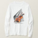 Para o amor da música - camiseta. Violino e arco em um fundo ondulado da folha de música. Com subtítulo do texto do título.