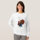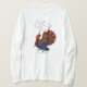 Uma camiseta de senhoras brancas de manga longa com um peru triste, carregando um cartaz que diz, 'Vai à Vegetariana no Dia de Ação de Graças' de uma design de cor d'água pintada à mão por Judy Adamson. Consulte também cartão de saudação correspondente.