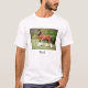 Um cavalo de Clydesdale do garanhão em um t-shirt branco com a palavra "parafuso prisioneiro."