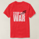PARE TODA A GUERRA é o grito claro e inequívoco de uma população afastada pelas táticas políticas do passado e determinado para ver a condição humana evoluir. Este design trabalha melhor no vermelho. Não é apropriado para as camisas brancas, pretas ou do marinho.