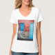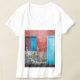 Camiseta Parede vermelha, azul e cinza, porta e janela