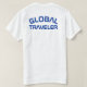 Ao redor do mundo por ar. Um na moda e uma camiseta única de cor branca ou clara para qualquer um. Impresso de dois lados. Uma imagem de silhueta de um avião contra o fundo azul. O texto curvo da cor vermelha circula em torno do círculo azul contra o fundo branco. Um código internacional de aeroporto CDG, Paris, França, coordenadas geográficas. Um nome personalizável acima da imagem, texto personalizável "Viajante global" sob o nome. Dois textos personalizáveis GLOBAL e TRAVELER nas costas. Você pode alterar a imagem e pode alterar ou excluir quatro textos personalizáveis independentemente. Não se esqueça de escolher outro estilo, cor, tamanho, gênero do roupa. Você pode transferir este design para vários outros produtos. Caso seja necessário realocar a imagem, para alterar o local dos textos, a fonte e a cor da fonte, use o botão "Personalizar" ou a opção "Personalizar este modelo —> Detalhes". Seja criativo, personalizado, comprar o belo presente para seus familiares, amigos, companhia, ou para você mesmo, aproveite e seja feliz!