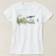 Stilt Necked preto bonito que procura a comida nas gramas, feitas digital em desenhos animados como o design. Parte superior, camisa, camisole, camisola, t-shirt, etc.