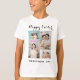 A camiseta tem 4 colagens de fotos e textos brancos na frente. Você pode personalizar as fotos e o nome da família ano clicando na opção personalizar.