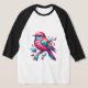 Camiseta Básica, Mangas Raglan 3/4, Branco/Preto, Adulto M