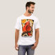 Uma camisa baseada em um 9" original" pintura da aguarela X12 & da tinta pelo rei de David do artista. Uma combinação de linhas estruturadas & de uma aguarela mais fraca combinadas com um encanto luz-hearted cria uma visão estilizado original. Estes trabalhos de arte foram criados no espírito perpétuo de explorar a ideia da "variação em um tema" encontrar resultados novos com cada trabalho. A aplicação espontânea, às vezes selvagem da aguarela combinada com o uso mais organizado das linhas e as formas geométricas produzem um equilíbrio da liberdade & a segurança, o sentimento & a estabilidade e o caos & a ordem. Contudo, na extremidade, um sentido do divertimento colorido brilha completamente.