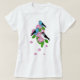 Camiseta Pássaros azuis, flores primavera, para a frente e