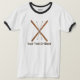 Escos cruzados de madeira e bastões de esqui. Adicione seu próprio texto.