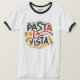 O design de camiseta "Pasta La Vista" usa uma mistura divertida e vibrante de cores para celebrar o trocadilho favorito de todos. Texto: "Massas alimentícias" é desenhado em caracteres negros e ligeiramente brancos, com uma cor diferente, que lembra vários tipos de massas, formas e cores (pensem vermelho para a caneta, verde para macarrão espinafre, etc.). "La Vista" usa uma fonte mais elegante e levemente itálida, com cores contrastantes ou complementares, acrescentando um toque de sofisticação ao trocadilho lúdico. Imaginem: O design incorpora elementos que simbolizam massas e senso de despedida, mas evita usar pessoas. Aqui estão as opções usadas na imagem: Um garfo colorido girando uma coleção de diferentes formas de massas coloridas, com algumas formas formando as letras "LA" para se conectar visualmente ao texto escrito. Uma tigela a vapor de massa colorida com uma bolha de fala a aparecer que diz "Ciao!" ou "Até mais!" numa fonte divertida, acrescentando um toque de personalidade. Um solteiro de espaguete colorido formando um caminho bobo que leva em direção a uma linha do horizonte, sugerindo uma partida enquanto faz referência à longa e fina forma de espaguete. Esta design é perfeita para quem desfruta de um bom trocadilho, ama macarrão, e quer uma maneira leve de dizer adeus.