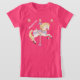 Um pônei de carrossel de circo bonito com mané e cauda fluidos. Flores cor-de-rosa e Lavanda azuis e sotaques cardíacos cor-de-rosa. Bonito fundo azul de faixa azul pastel. Personalize o texto do nome ou exclua.