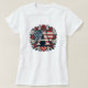 This initial 'A' is special for its powerful blend of Americana, nature, and vintage style. The letter is filled with a cracked, distressed American flag pattern, symbolizing classic, weathered patriotism. This bold initial is encircled by a wreath of vibrant red roses and peaceful white daisies. The design is perfect for Fourth of July apparel, personalized patriotic gifts, or vintage t-shirt graphics.