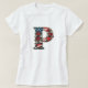 Camiseta Patriotic Floral Letter P Wreath Design