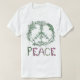o sinal de paz tradicional, feito fora das folhas e das flores verdes. com a paz das palavras debaixo dela escrita outra vez usando as folhas e as flores, esta vez com roxo