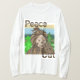Arte pop retrô desenhada à mão Sasquatch ou Bigfoot fazendo um sinal de paz com citação camisa paz aí.