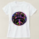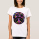 Lá um sinal de paz com a palavra "PAZ" acima dela. As cores são fundo preto com um primeiro plano tingido laço.